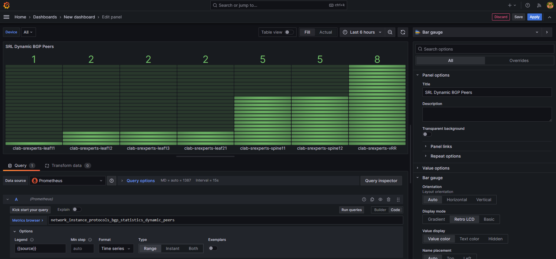 Network operators need near real-time visibility into network metrics like BGP peer health or interface statistics across multiple routers to proactively detect service disruptions. In the upcoming tasks you will build a live dashboard to monitor BGP peer status, enabling faster incident response in production.